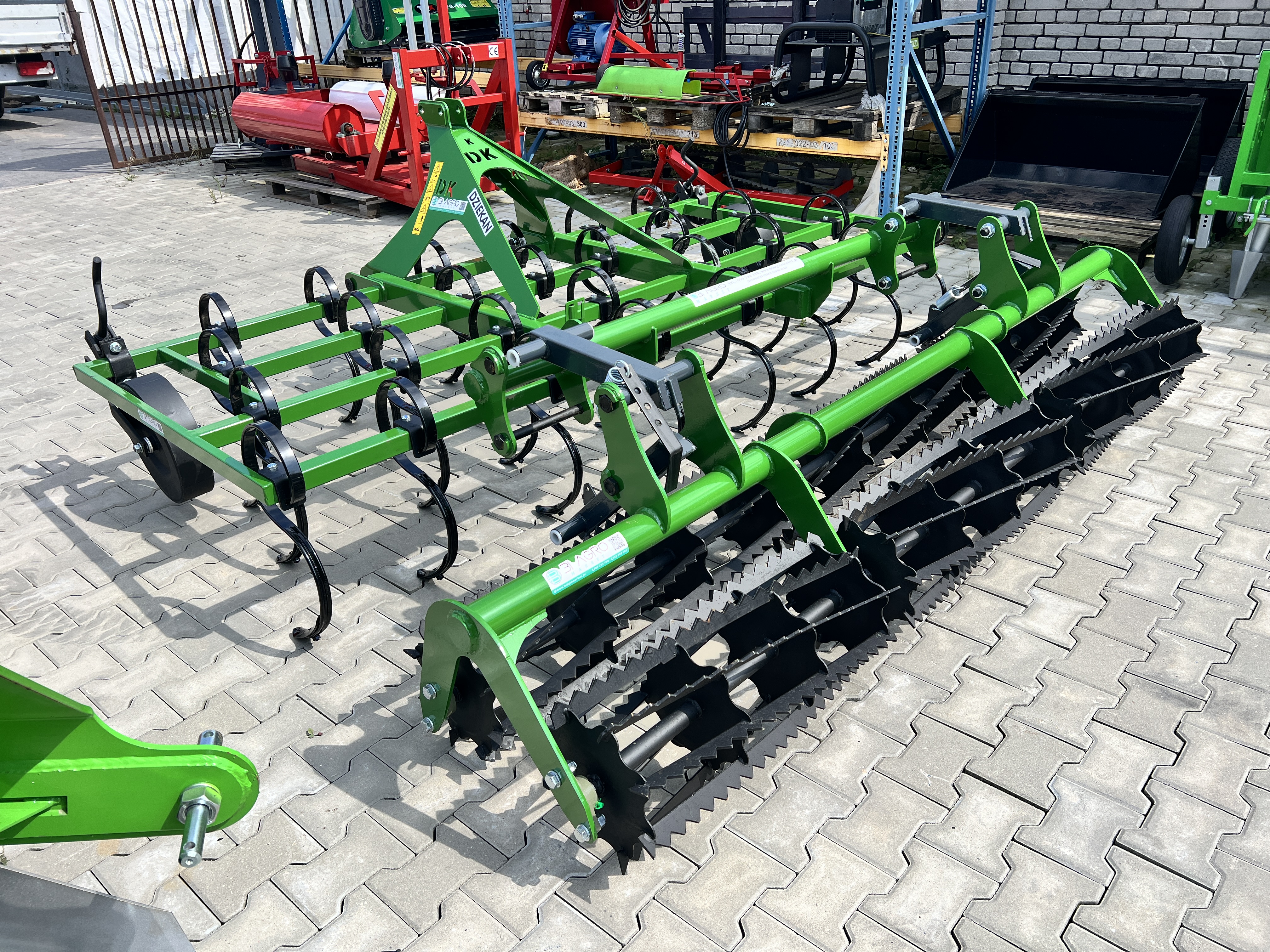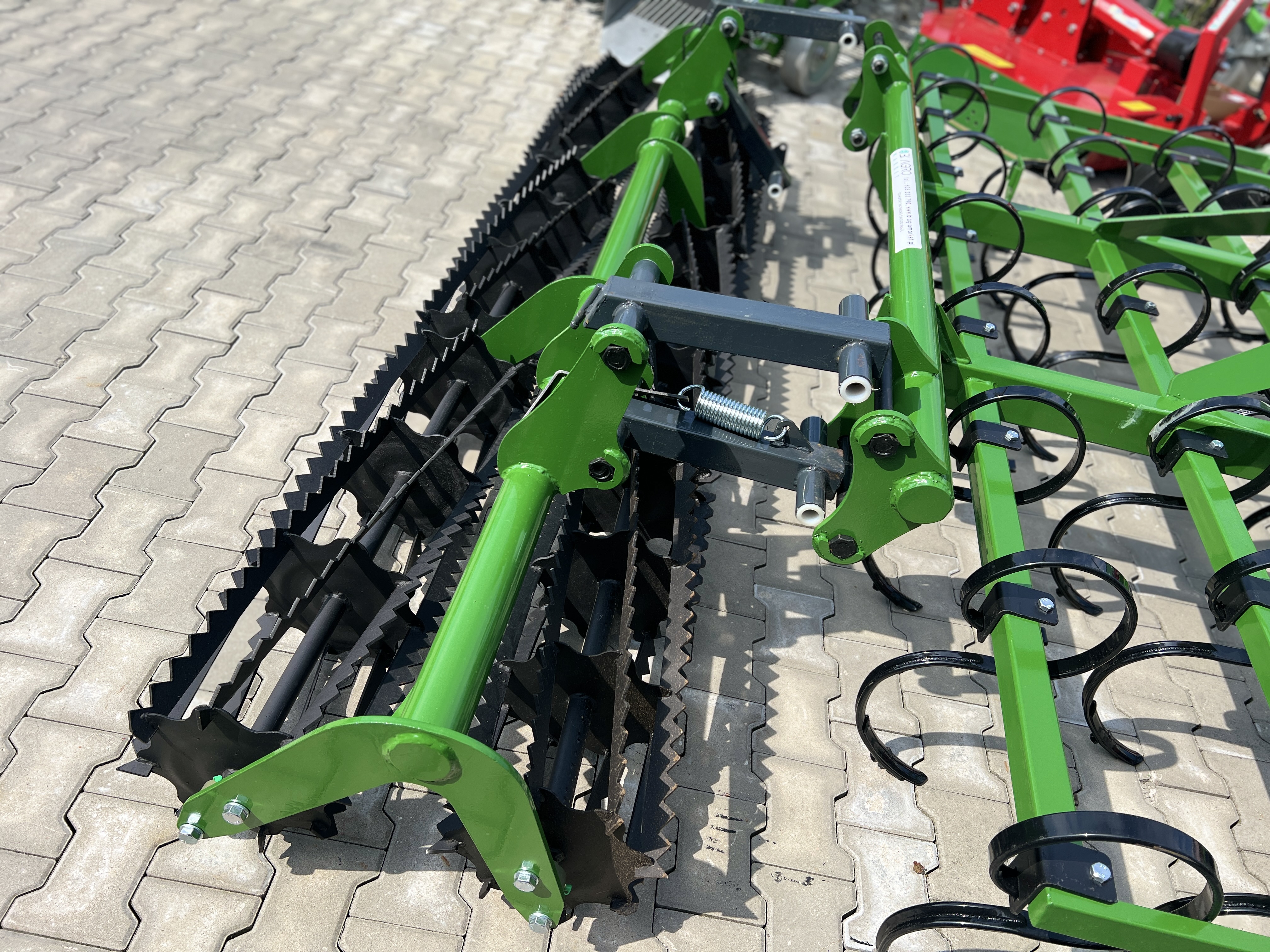 Agregat uprawowy APOLLO 1.8m bez dodatkowej wieżyczki TUZ na wałkach. Wałki są zespolone z agregatem demontowalnymi tulejami.