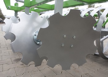Mocowanie talerzy niwelujących (pełnych lub uzębionych) na wychylnej ramie wału rurowego jest korzystne ze względu na amortyzowanie przeciążeń i zmianę ich położenia wraz ze zmianą położenia wału. Wał pozwala również na ustawienie głębokości pracy maszyny do 15 cm.