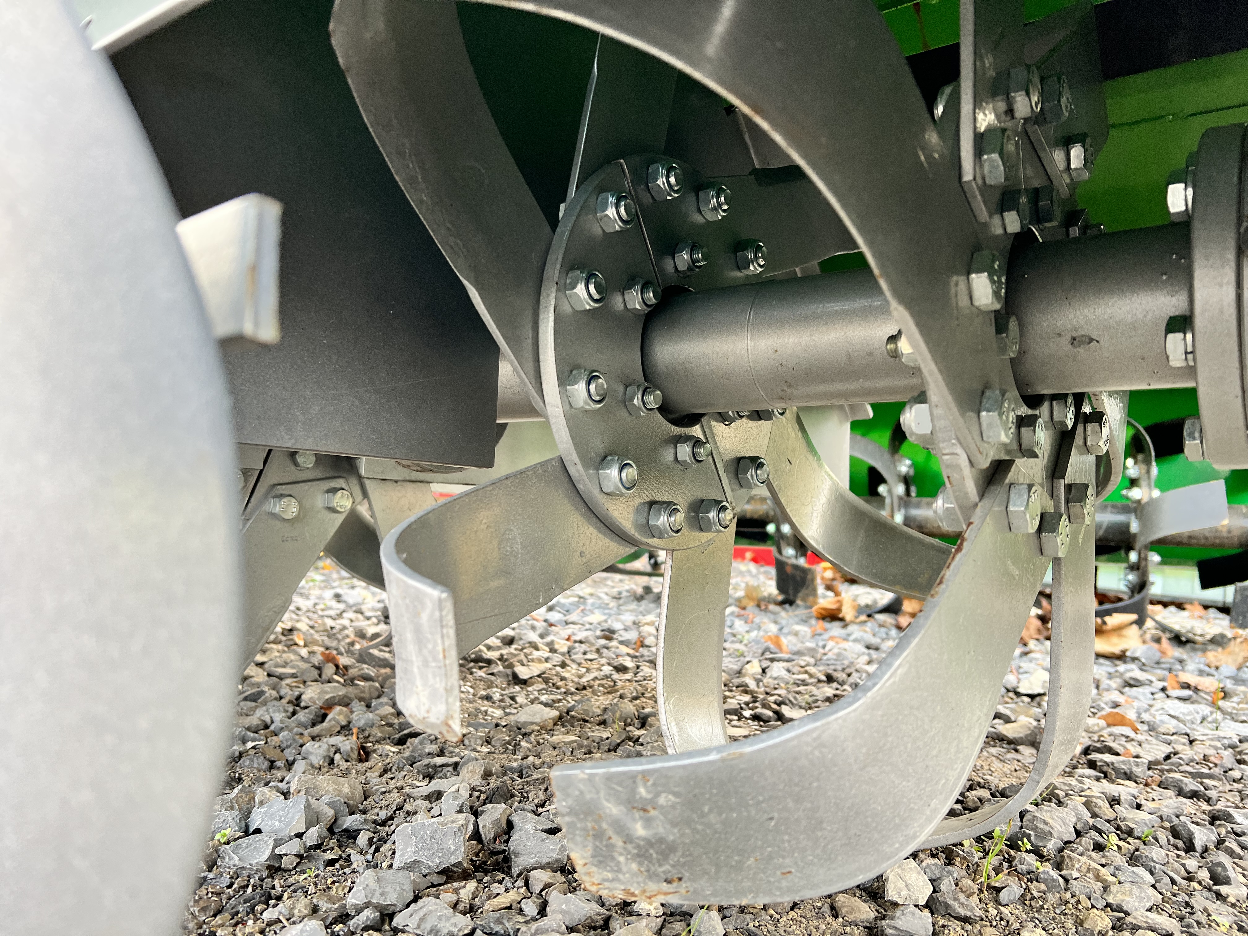 Maszyna ma zamontowane specjalne przegrody wewnętrzne oraz ekrany przednie, które mają zabezpieczyć rośliny przed uszkodzeniem przez wirujące noże, kamienie i rozdrabnianą glebę. Wyposażona jest w tradycyjną uchylną tylną klapę, która ogranicza wyrzut gleby i kamieni.