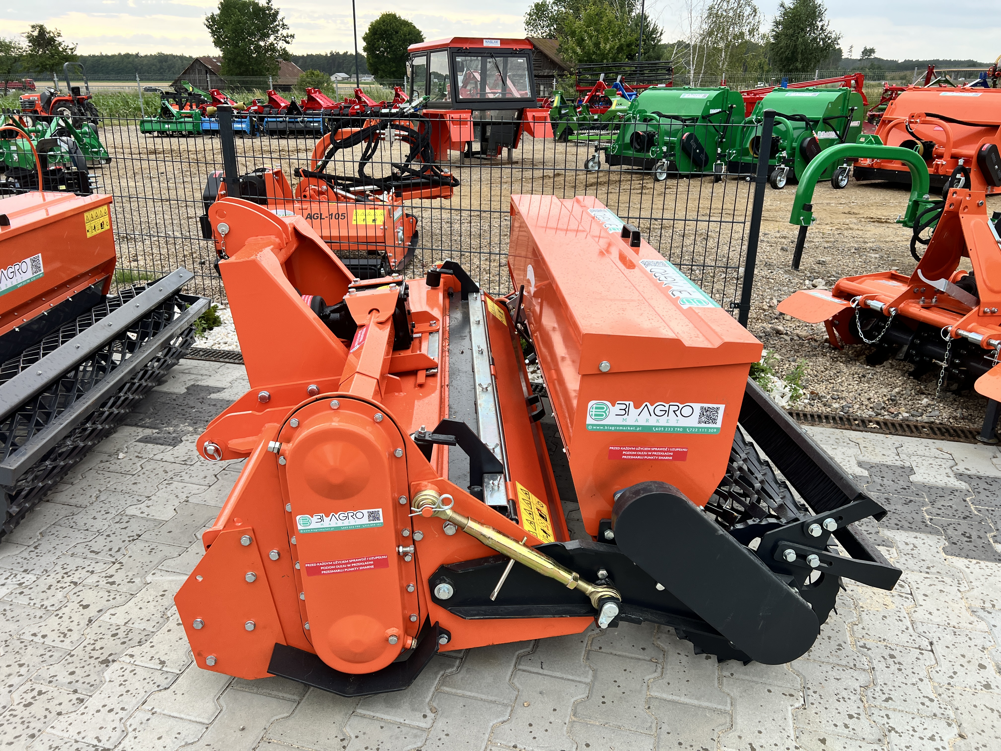Agregat uprawowy model SB łączy w sobie wszystkie elementy pozwalające na przygotowanie gleby pod wysiew. Jest połączeniem bardzo aktywnej glebogryzarki z separatorem kamieni i wałem siatkowym całkowicie wyrównującym powierzchnię uprawy. Wyposażenie agregatu w siewnik pozwala na oszczędność czasu i środków przy zakładaniu trawników.