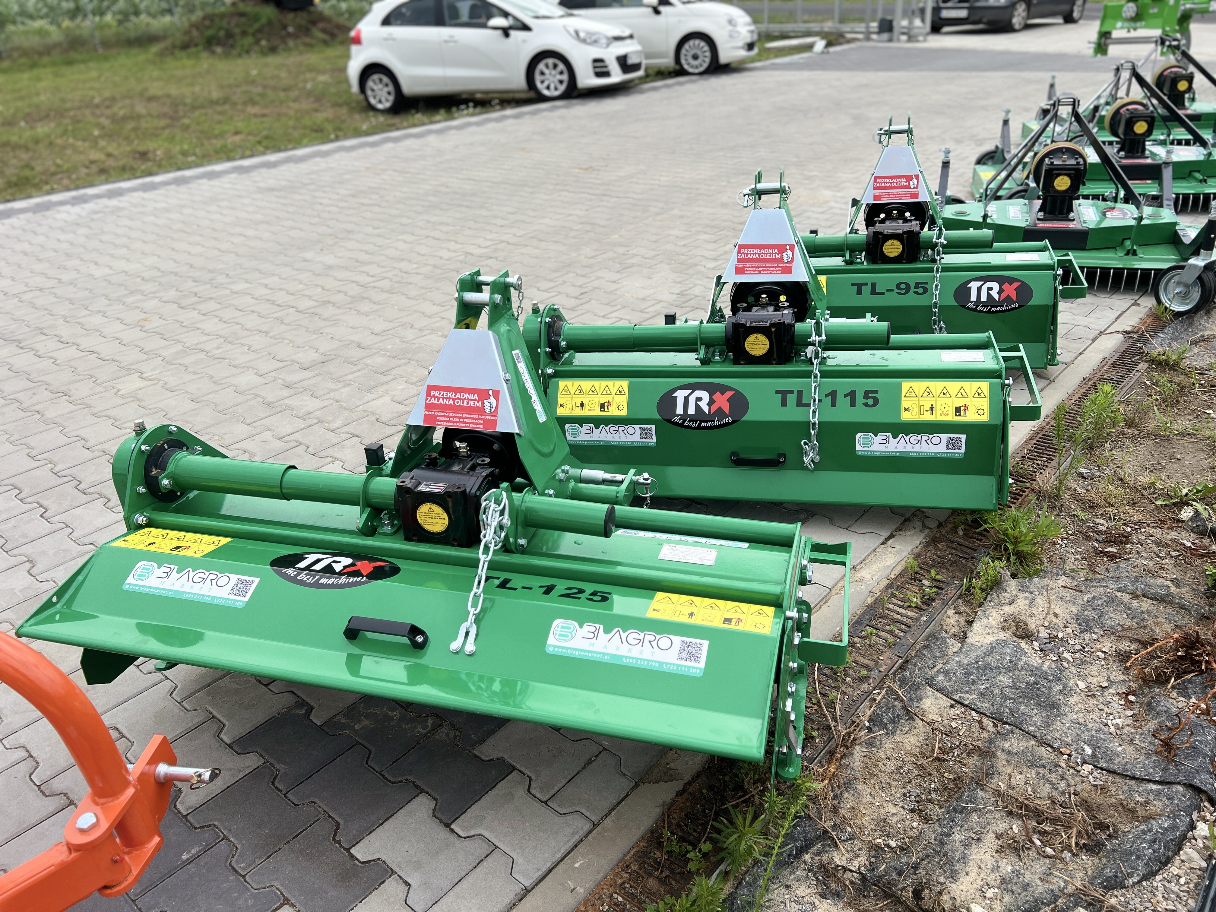 GLEBOGRYZARKA marki TRX z serii TL (model TL 115) została wyposażona w 24 bocznie wygiętych masywnych noży, rozmieszczonych po 4 sztuki na jednej sekcji, które bardzo dokładnie spulchniają i wyrównują glebę.