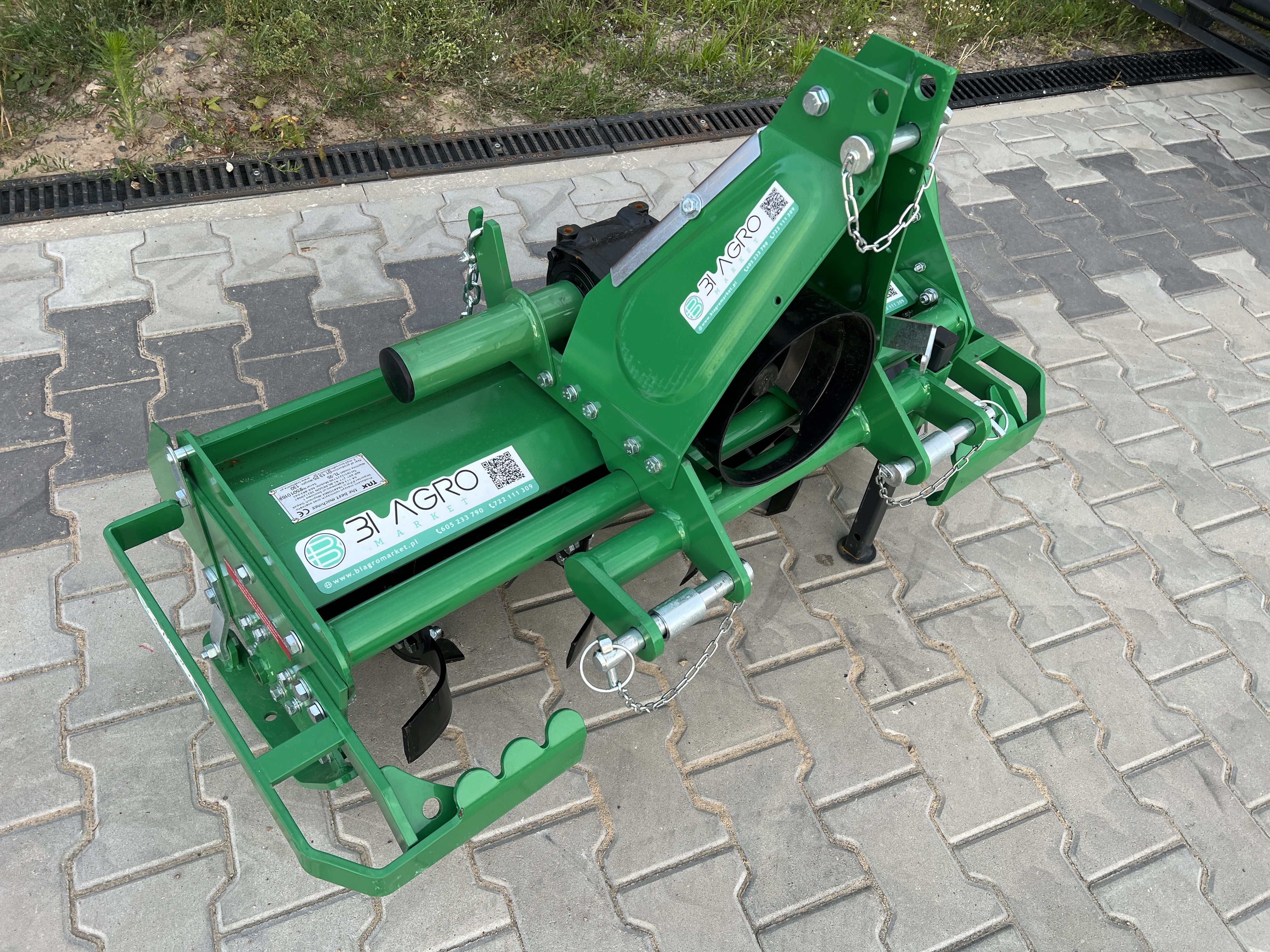 Narzędzie posiada 3-punktowe mocowanie do traktora, przekładnię kątową i łańcuch wyposażony w napinacz.
