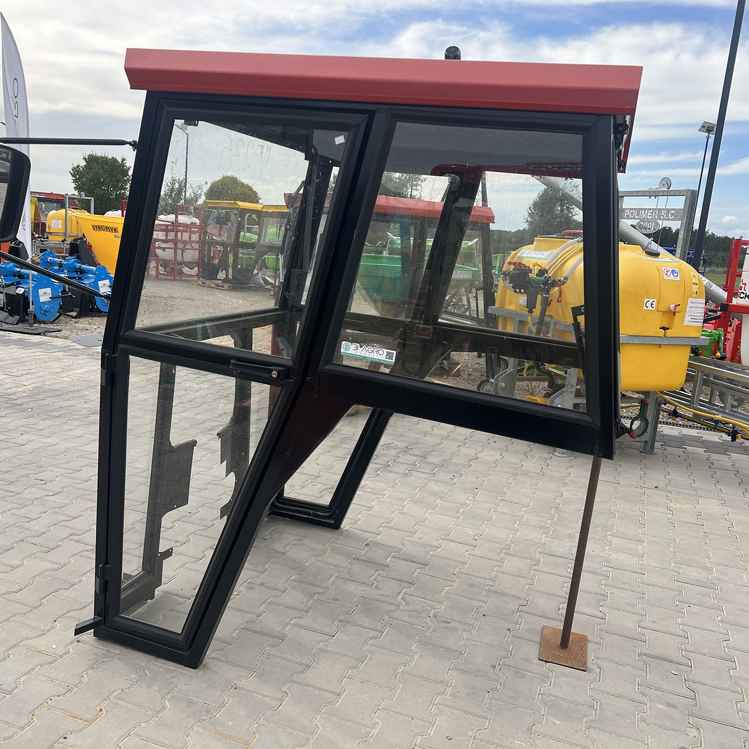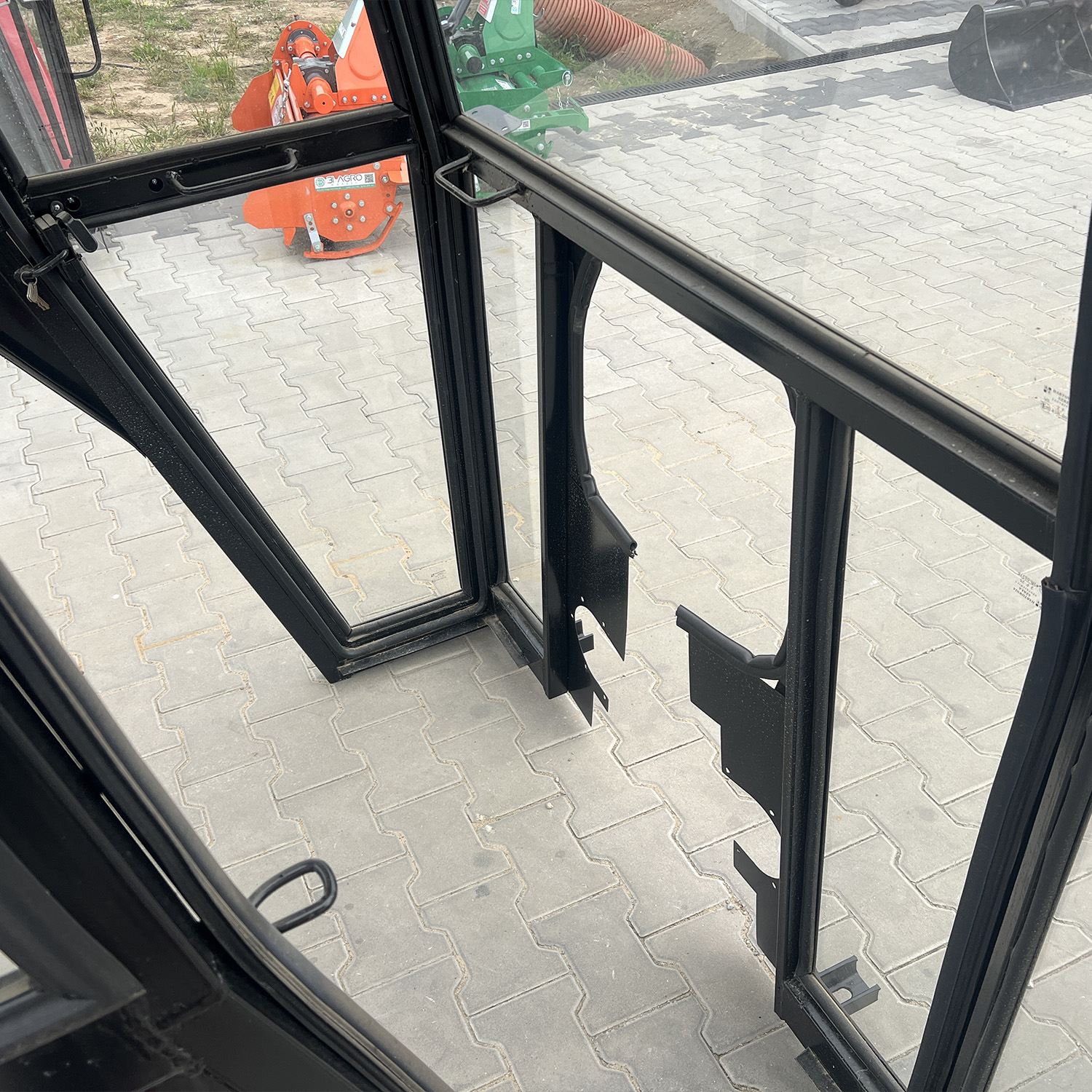 Kabina została wyposażona w tapicerowany, uchylny dach, który poprawia komfort pracy i wentylację wewnątrz. Drzwi otwierane do przodu posiadają zamek z kluczykiem, a duża powierzchnia szyb zapewnia doskonałą widoczność podczas codziennej pracy. Tylna szyba jest uchylna, co ułatwia operowanie maszynami zawieszanymi oraz wentylację.