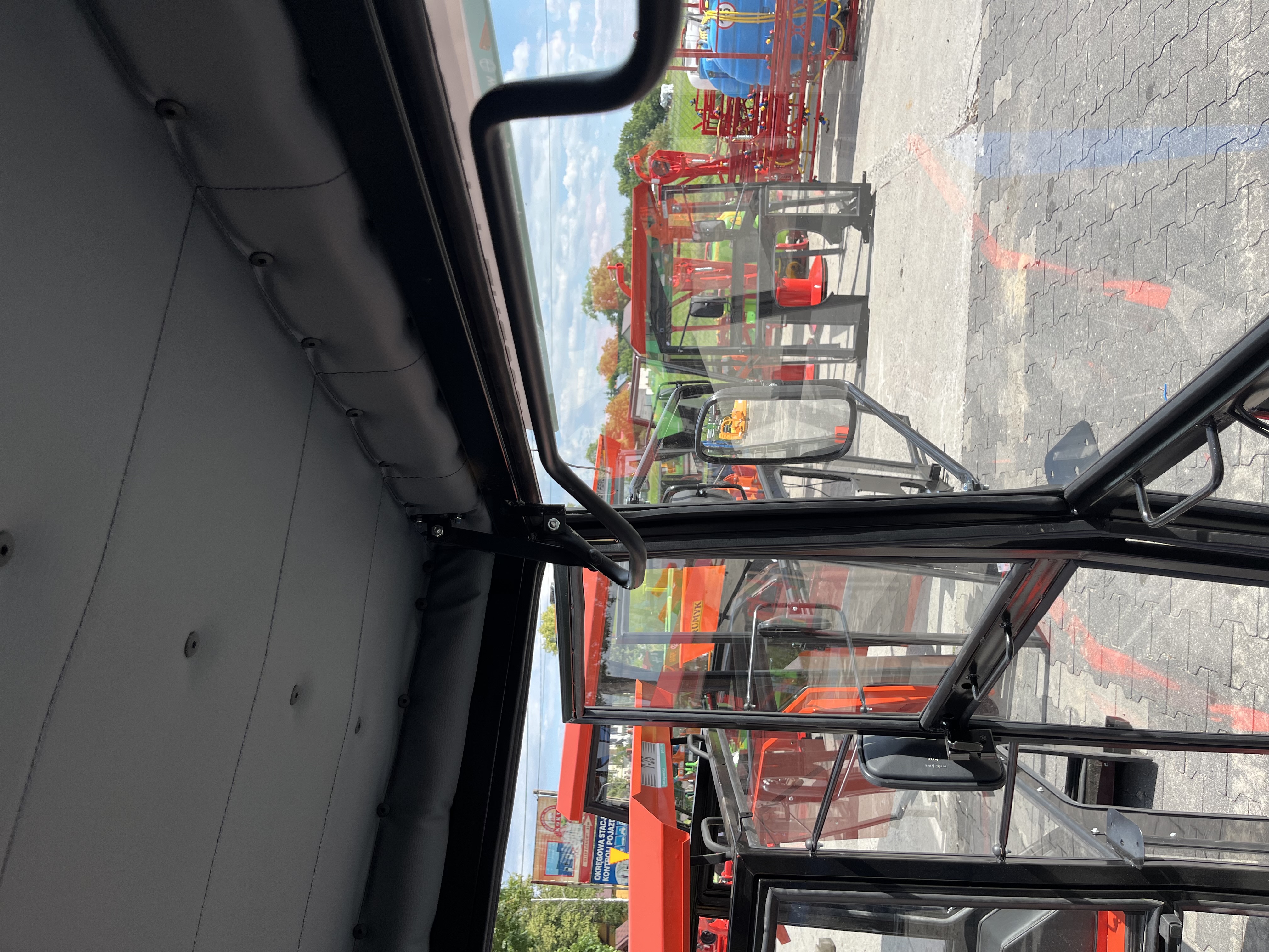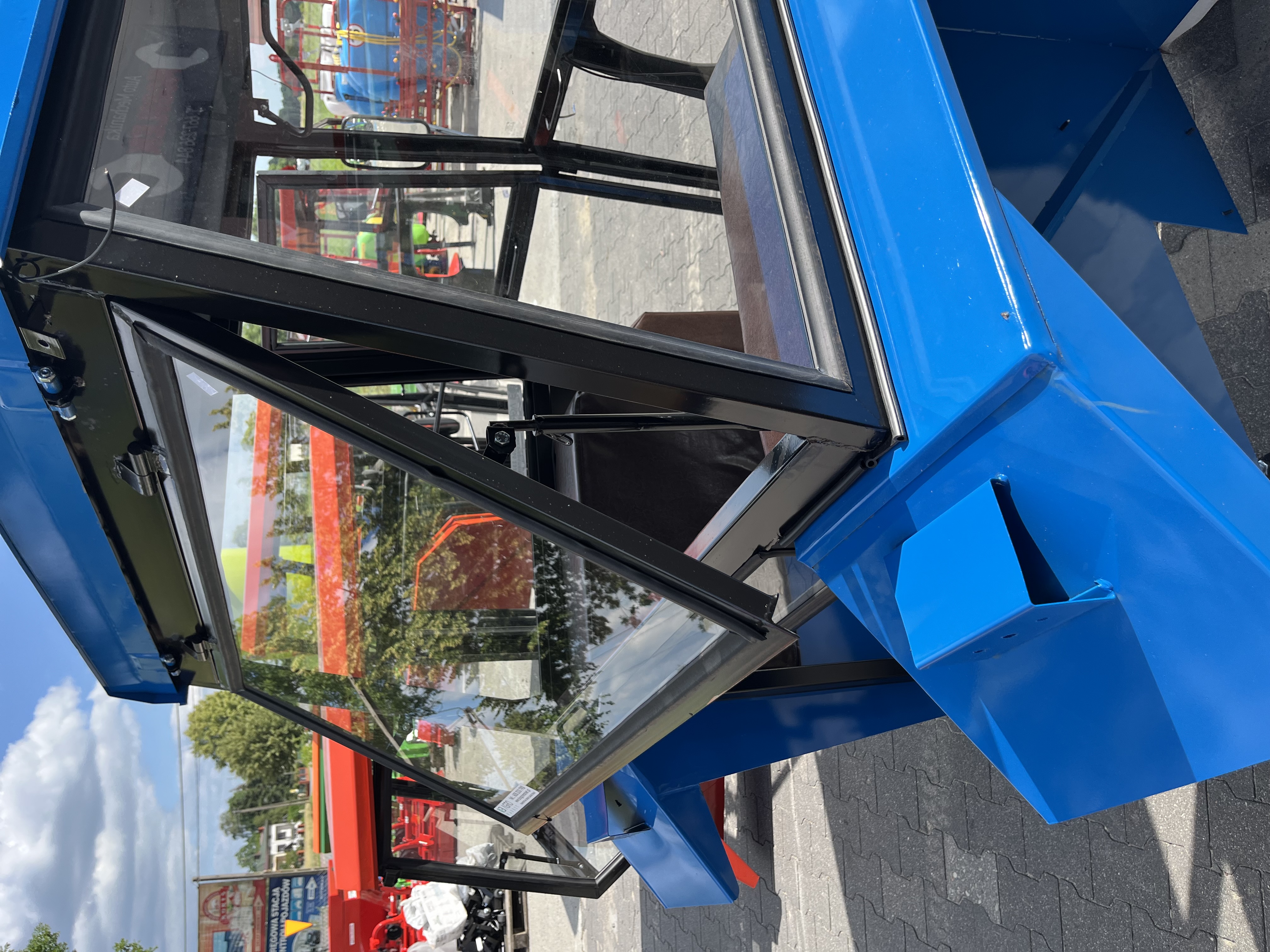 Kabina została wyposażona w tapicerowany, uchylny dach, który poprawia komfort pracy i wentylację wewnątrz. Drzwi otwierane do przodu posiadają zamek z kluczykiem, a duża powierzchnia szyb zapewnia doskonałą widoczność podczas codziennej pracy. Tylna szyba jest uchylna, co ułatwia operowanie maszynami zawieszanymi oraz wentylację.