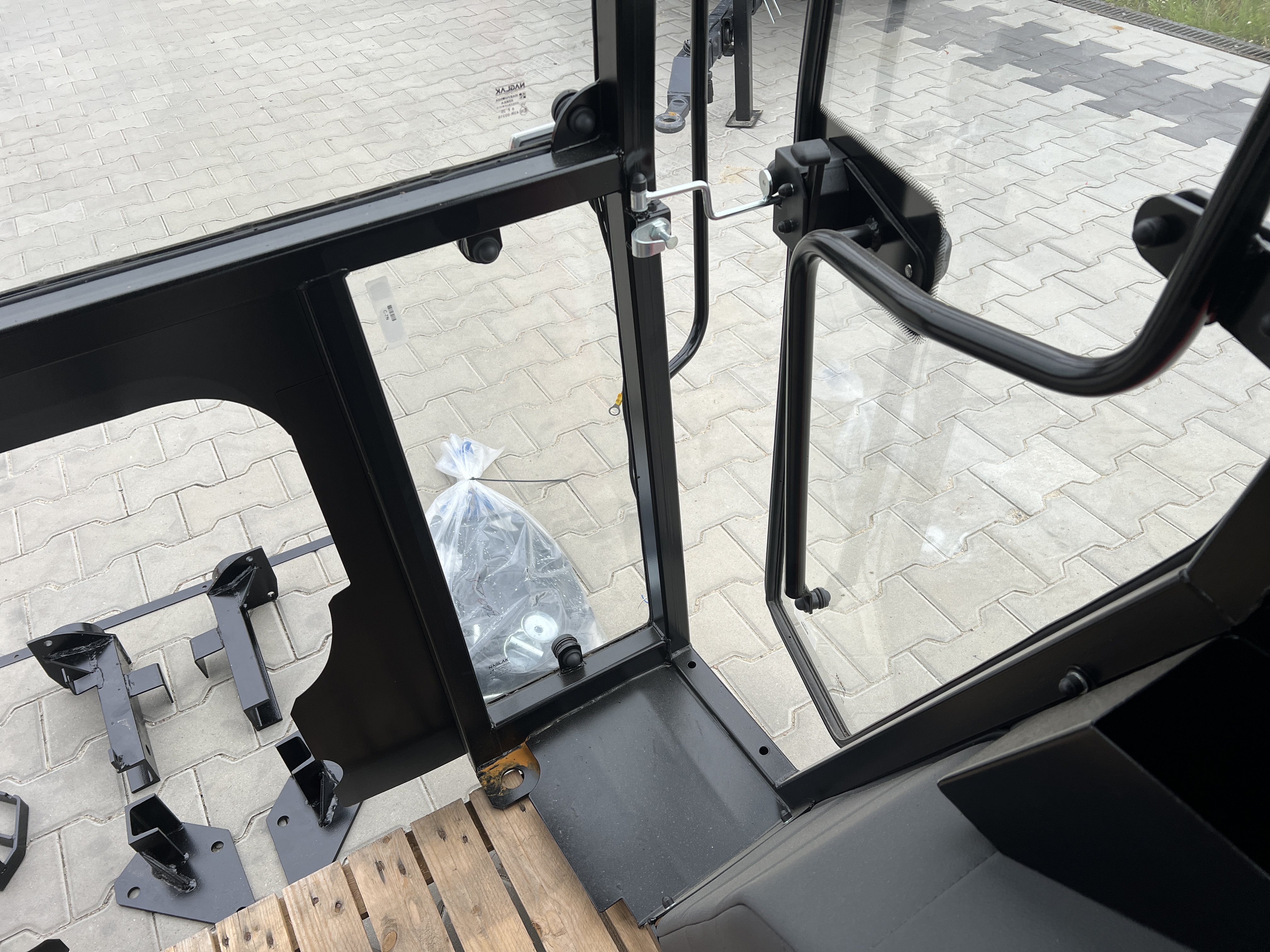 W środku znajduje się lampka kabinowa, osłona przeciwsłoneczna oraz komplet wszystkich elementów montażowych, w tym uszczelki, odbojniki, śruby, mocowania oraz blachy maskujące. Wszystko to sprawia, że montaż kabiny jest szybki i bezproblemowy.