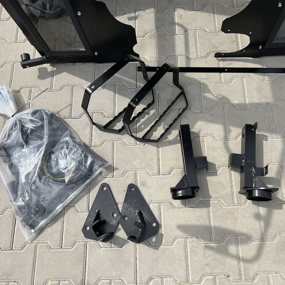 W środku znajduje się lampka kabinowa, osłona przeciwsłoneczna oraz komplet wszystkich elementów montażowych, w tym uszczelki, odbojniki, śruby, mocowania oraz blachy maskujące. Wszystko to sprawia, że montaż kabiny jest szybki i bezproblemowy.
