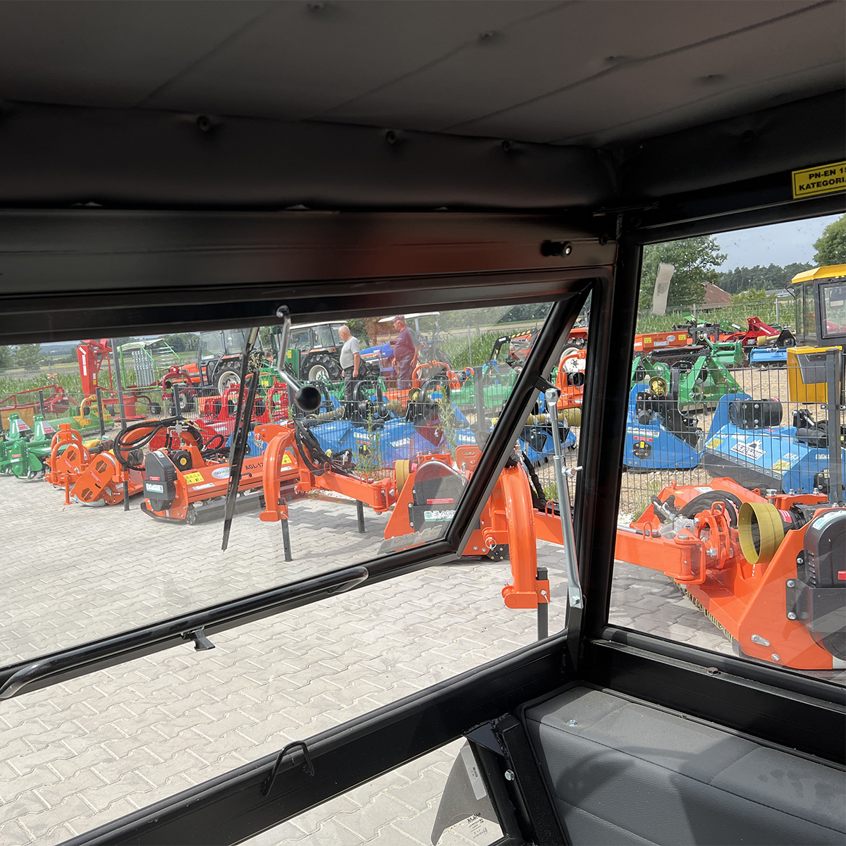Kabina została wyposażona w hartowane szyby, wycieraczki (przednią elektryczną oraz tylną mechaniczną), spryskiwacz przedniej szyby oraz wygodny, uchylny i tapicerowany dach. Obustronne drzwi z zamkami patentowymi zapewniają bezpieczeństwo i łatwe wejście do kabiny.