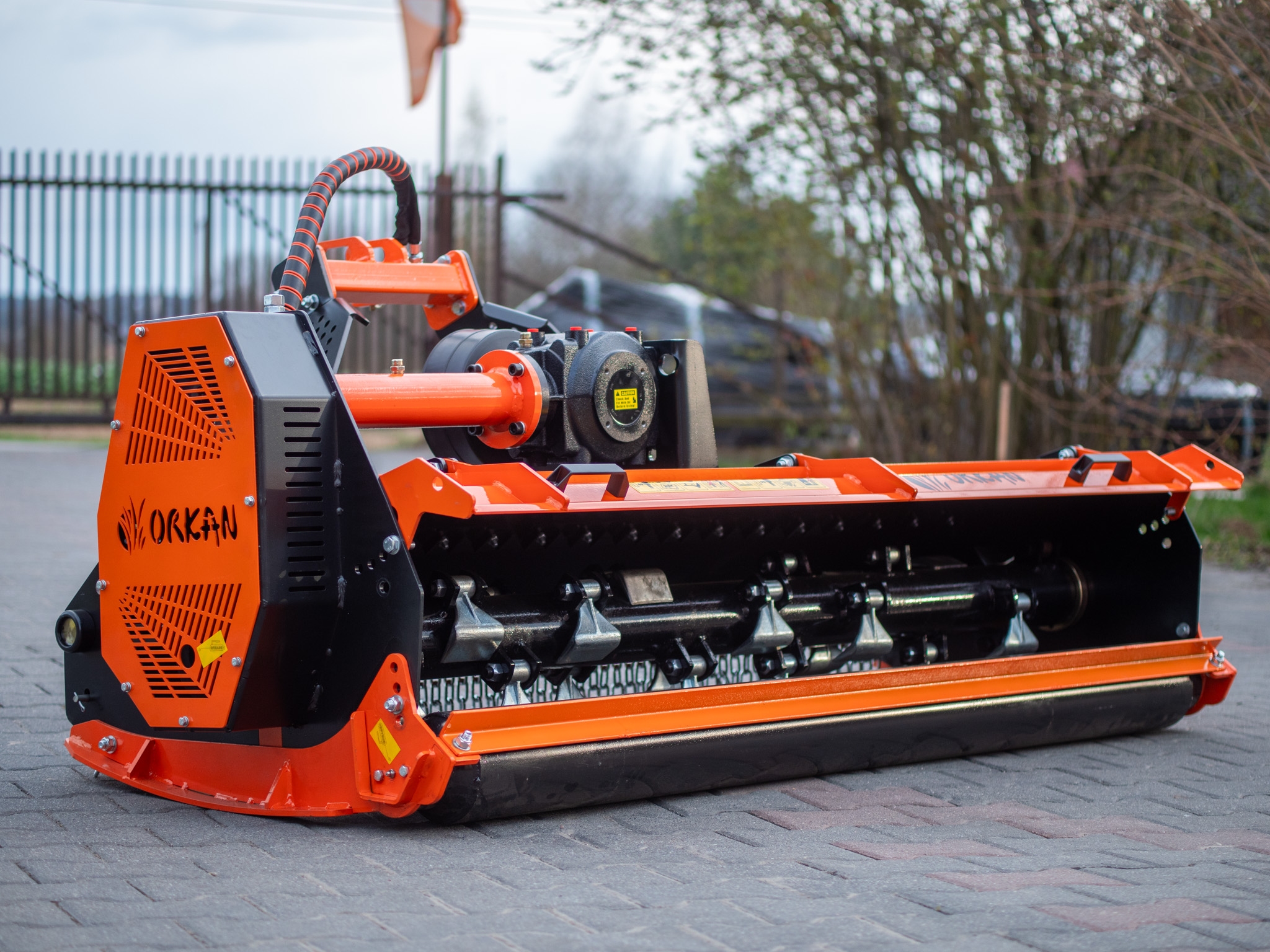 - Rotor o średnicy 108 mm z młotkami mocowanymi w układzie spiralnym, dzięki czemu nie udeżają całym rzędzie jak w standardowym układzie, zmniejszając obciążenie ciągnika.