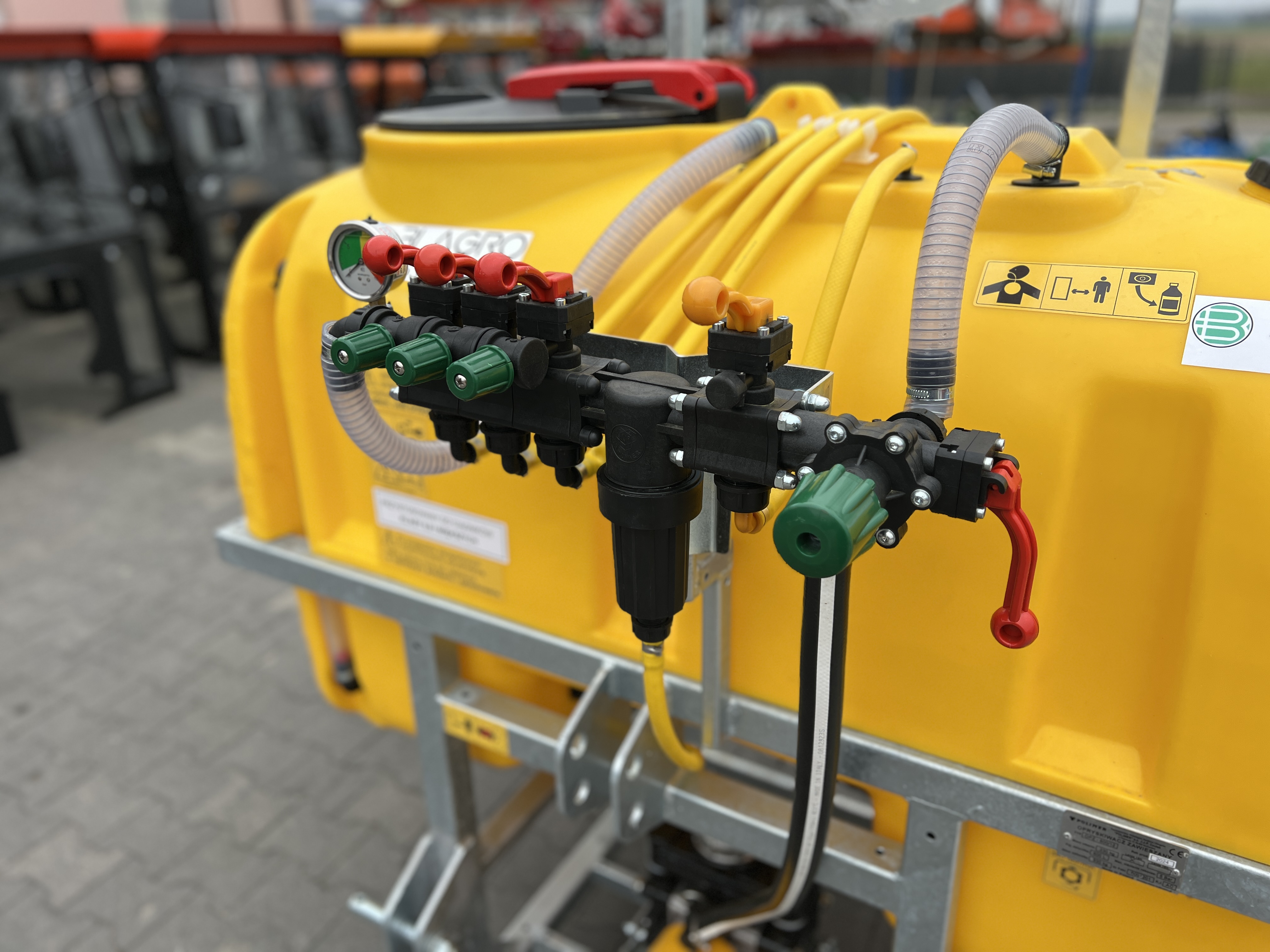 - Czterostopniowy system filtrowania cieczy ( I stopień sito wlewowe, II stopień filtr ssawny, III stopień filtr samoczyszczący przy rozdzielaczu, IV stopień filterki w oprawach rozpylaczy)