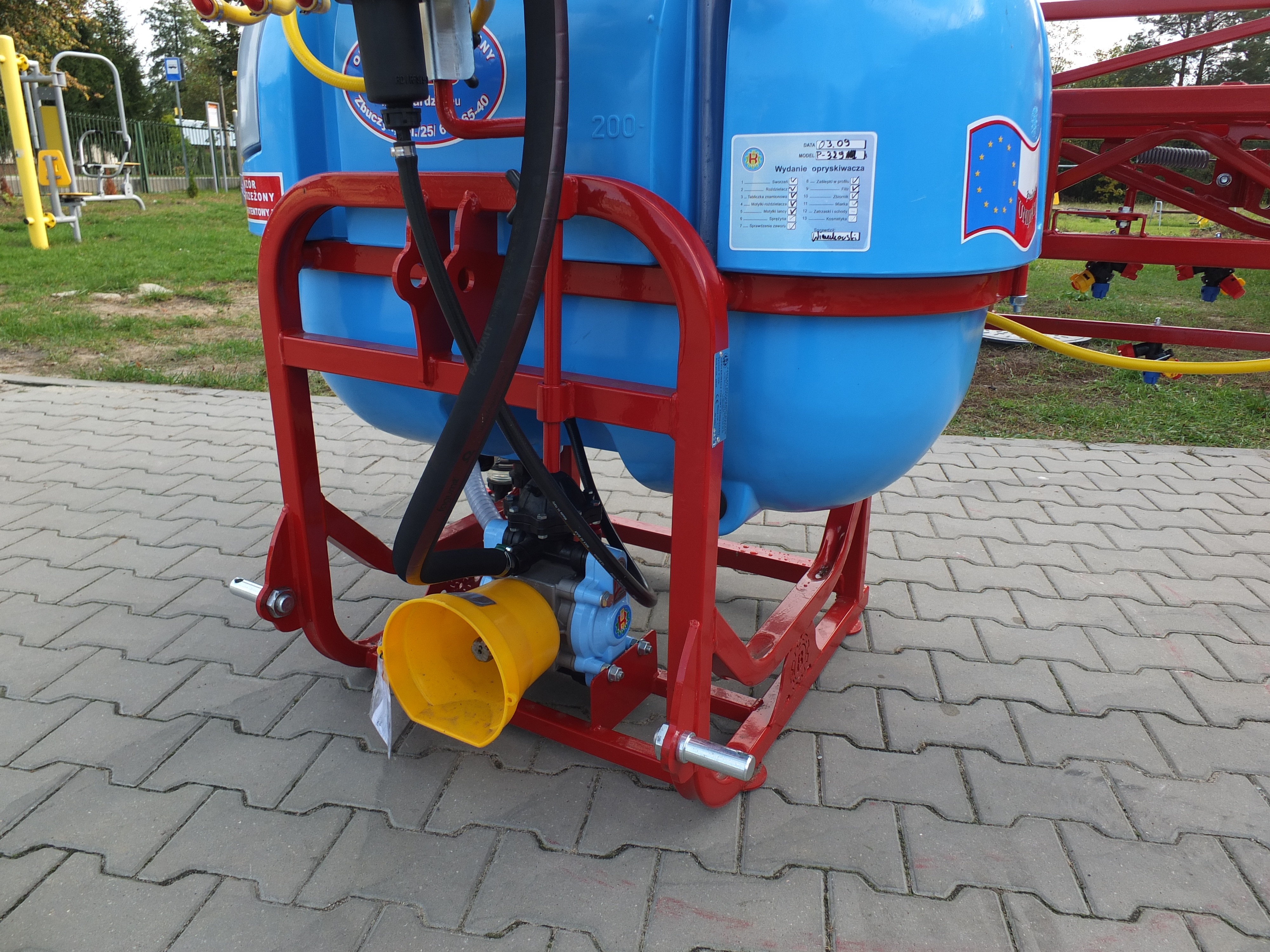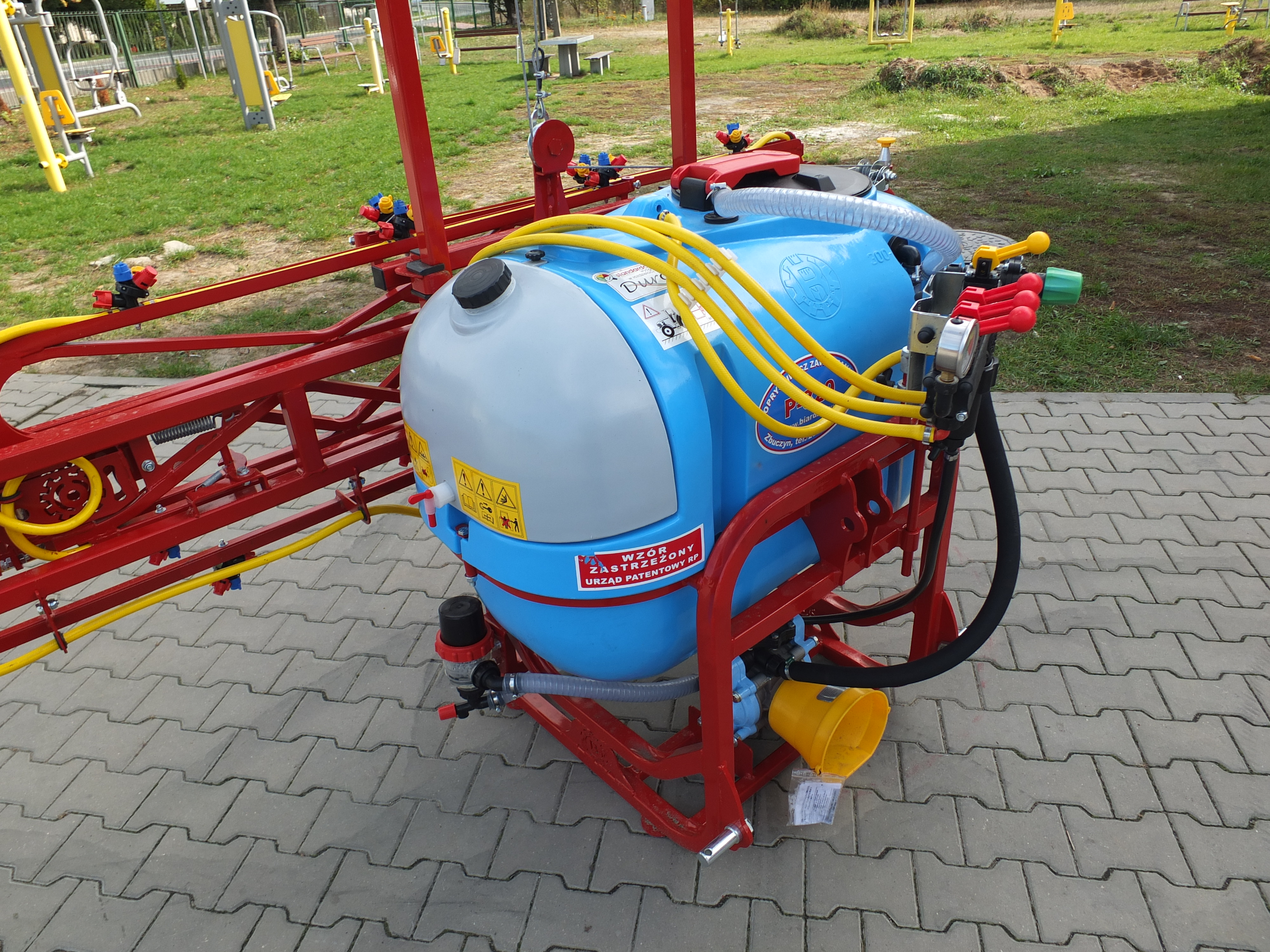 Opryskiwacz polowy firmy Biardzki model P-329/4 służący do wykonania zabiegów ochrony roślin i nawożenia nawozami płynnymi na plantacjach polowych.