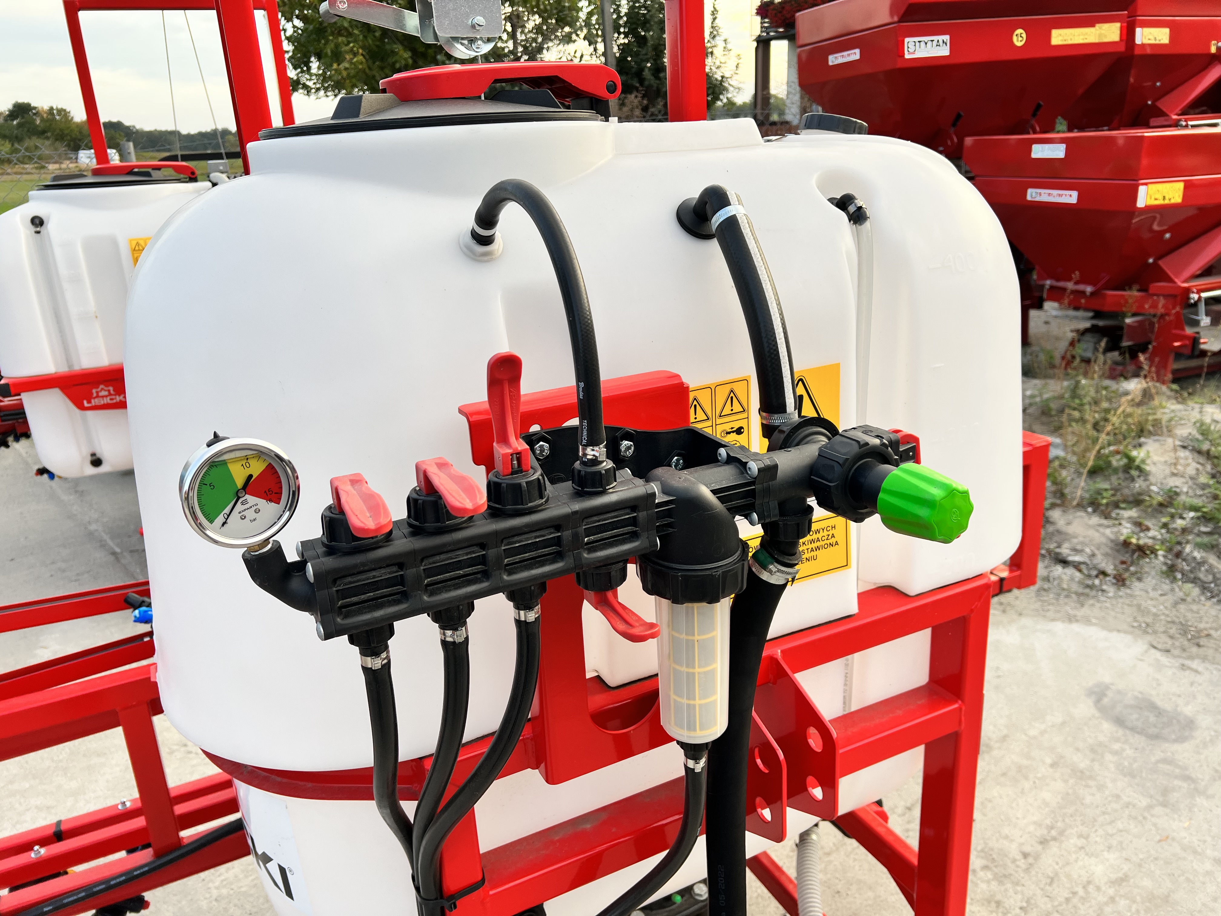 - Czterostopniowy system filtrowania cieczy ( I stopień sito wlewowe, II stopień filtr ssawny, III stopień filtr samoczyszczący przy rozdzielaczu, IV stopień filterki w oprawach rozpylaczy),