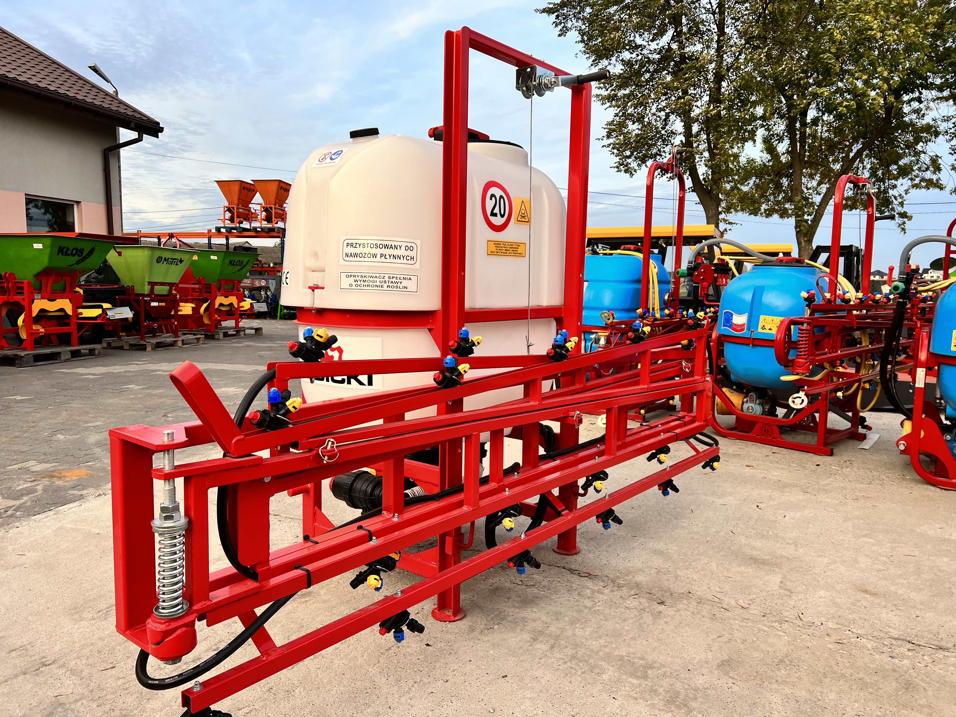 Opryskiwacz polowy firmy Lisicki model P035/1 służący do wykonania zabiegów ochrony roślin i nawożenia nawozami płynnymi na plantacjach polowych.