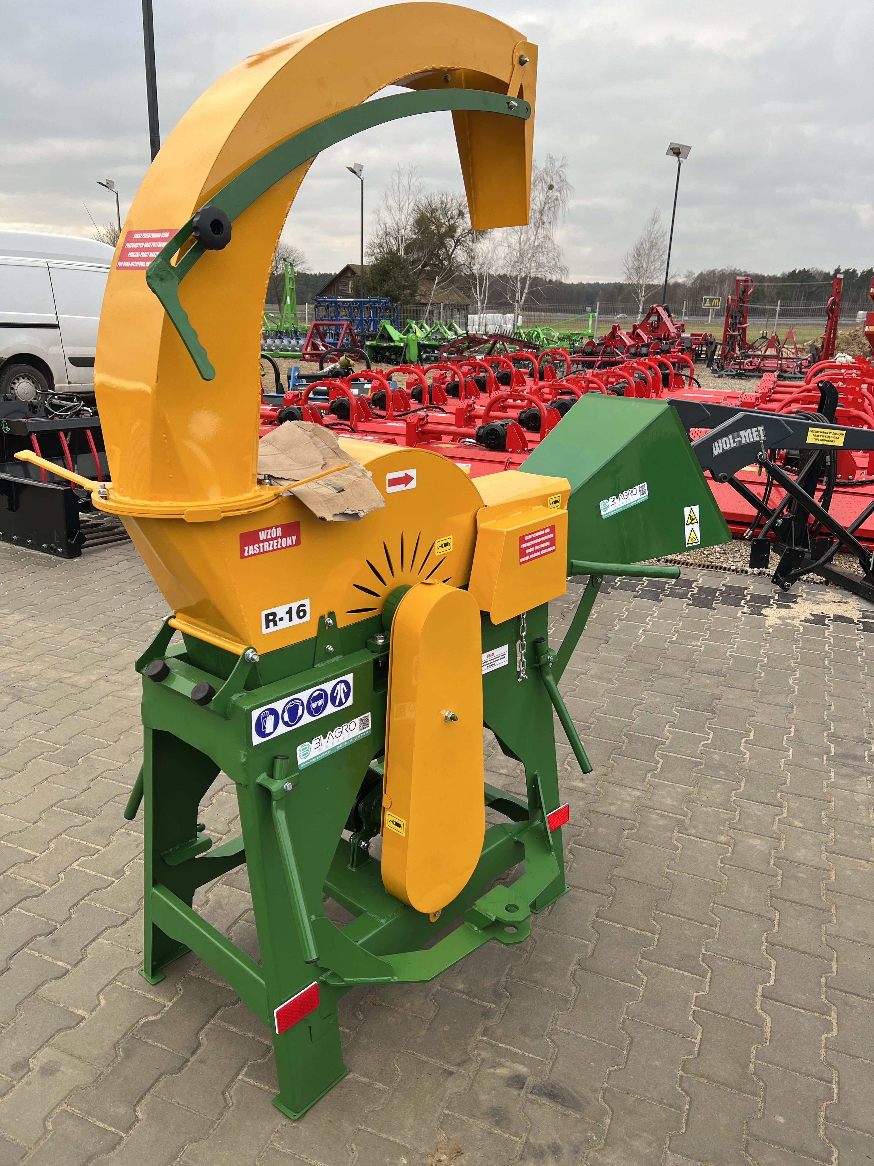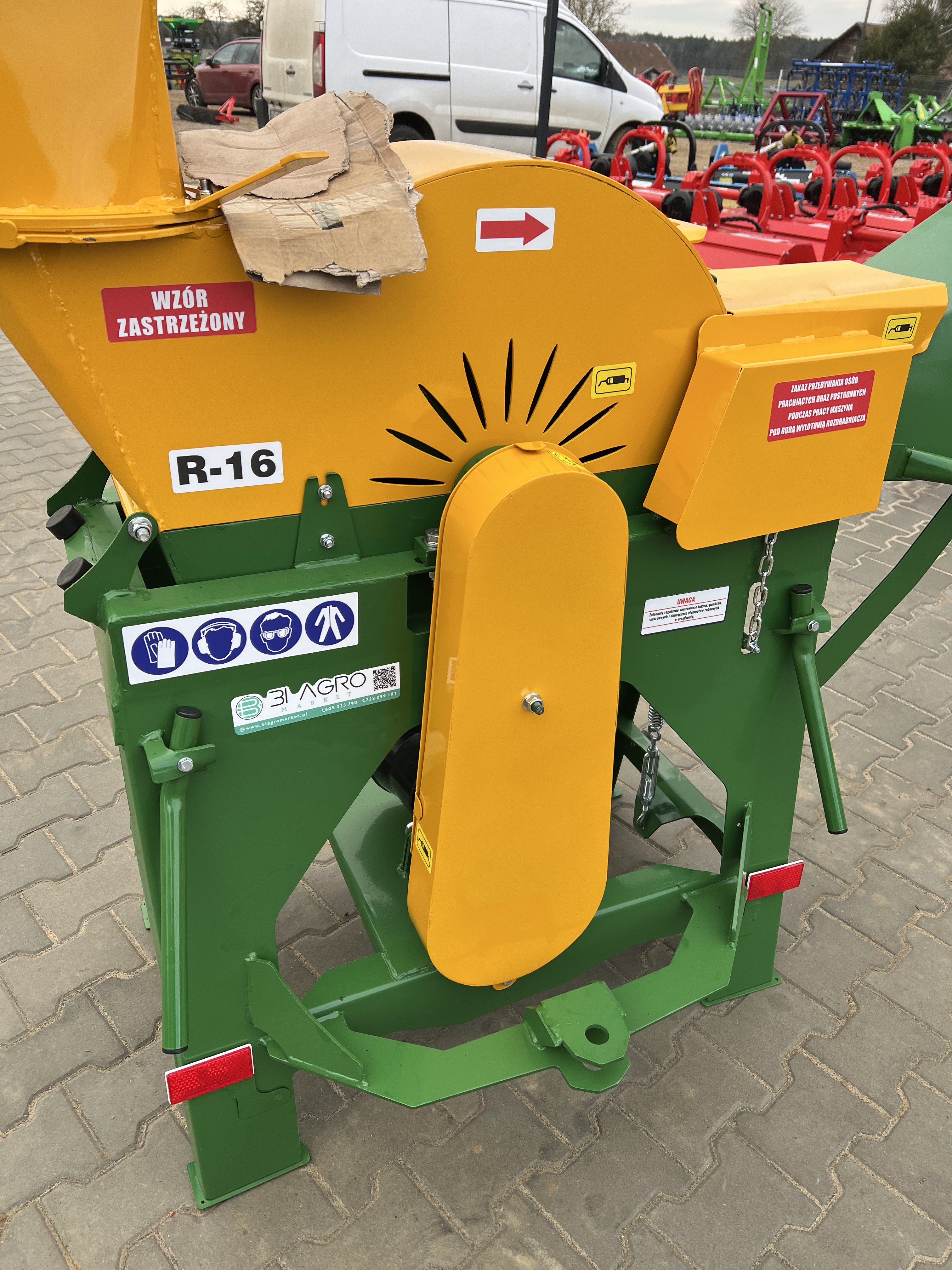 - składane osłony umożliwiające łatwe ,bezkolizyjne poruszanie się ciągnika z rębakiem